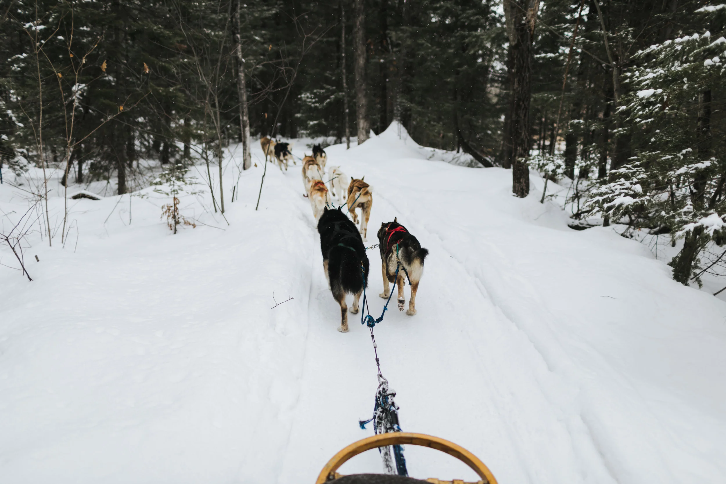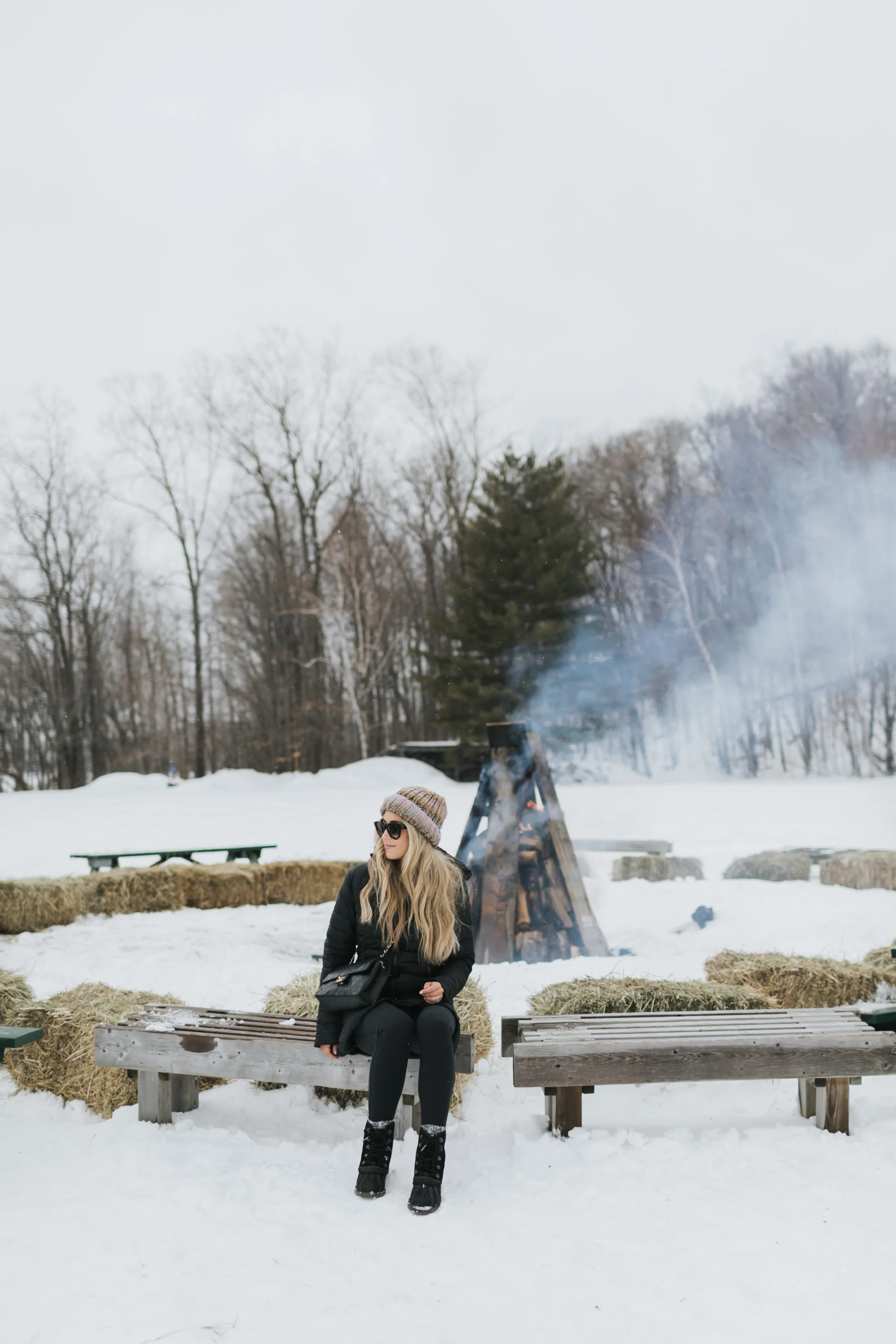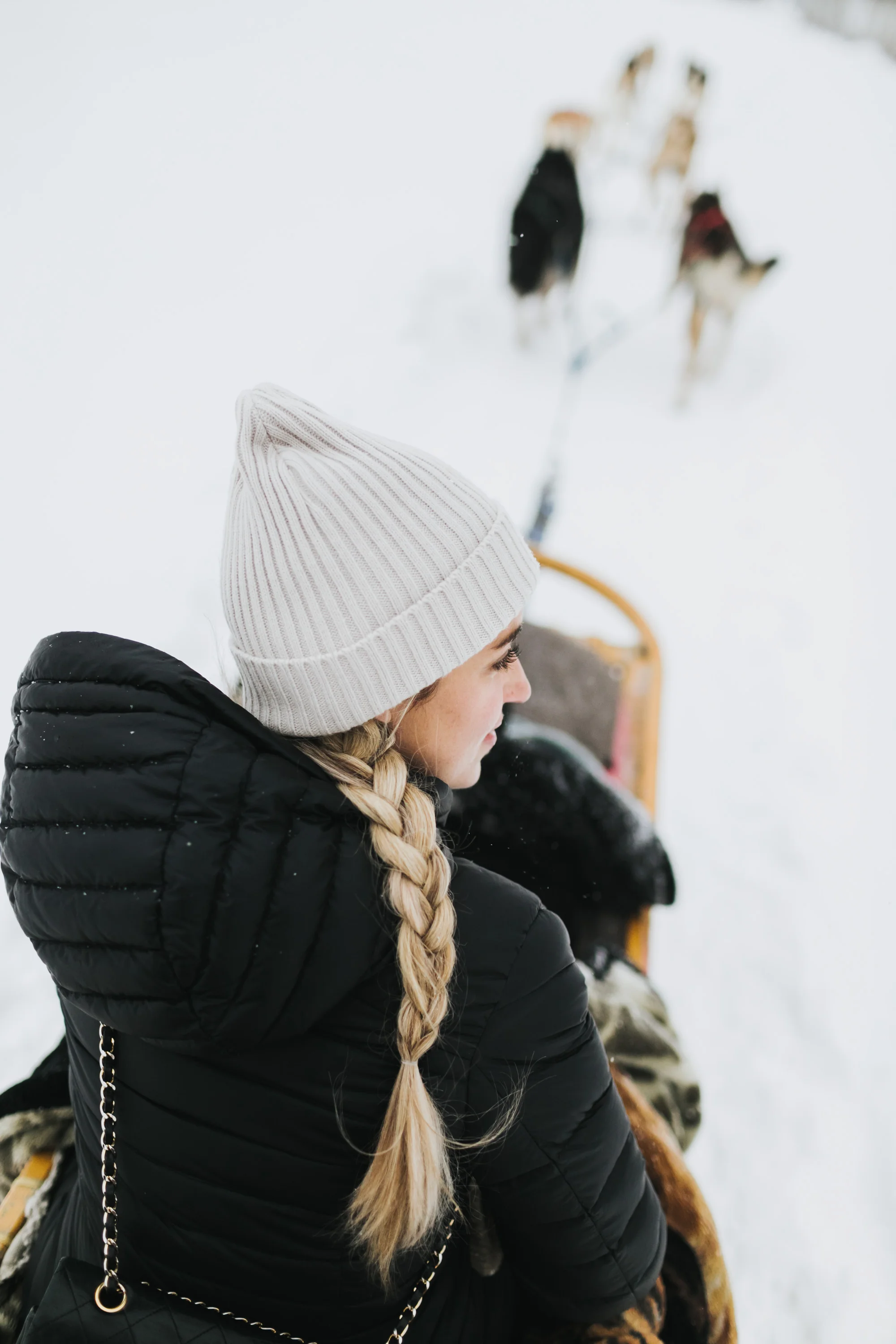 The hotel was so cozy, made from wood with a huge six sided fireplace in the middle it was the perfect luxe chalet. We spent the entire day playing and exploring outside (they are right beside the river which makes for a beautiful setting!) first by having soup by a huge bonfire, then dogsledding! It was my first time, and it was such an amazing experience.
