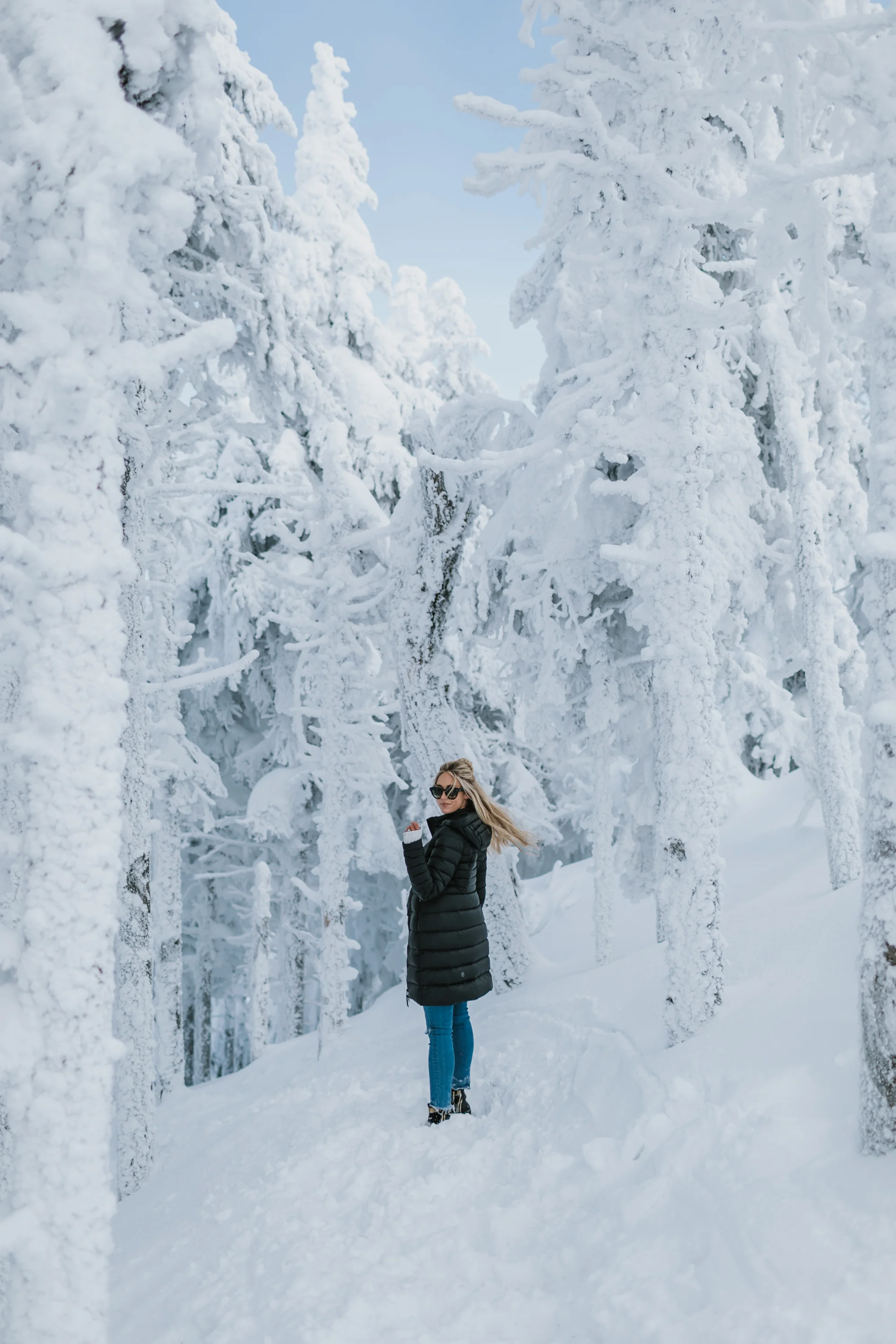 We headed up the mountain on the gondola and explored through the trees heavy with snow - the sun was sparkling on the winter white snow - it was seriously so breathtaking!