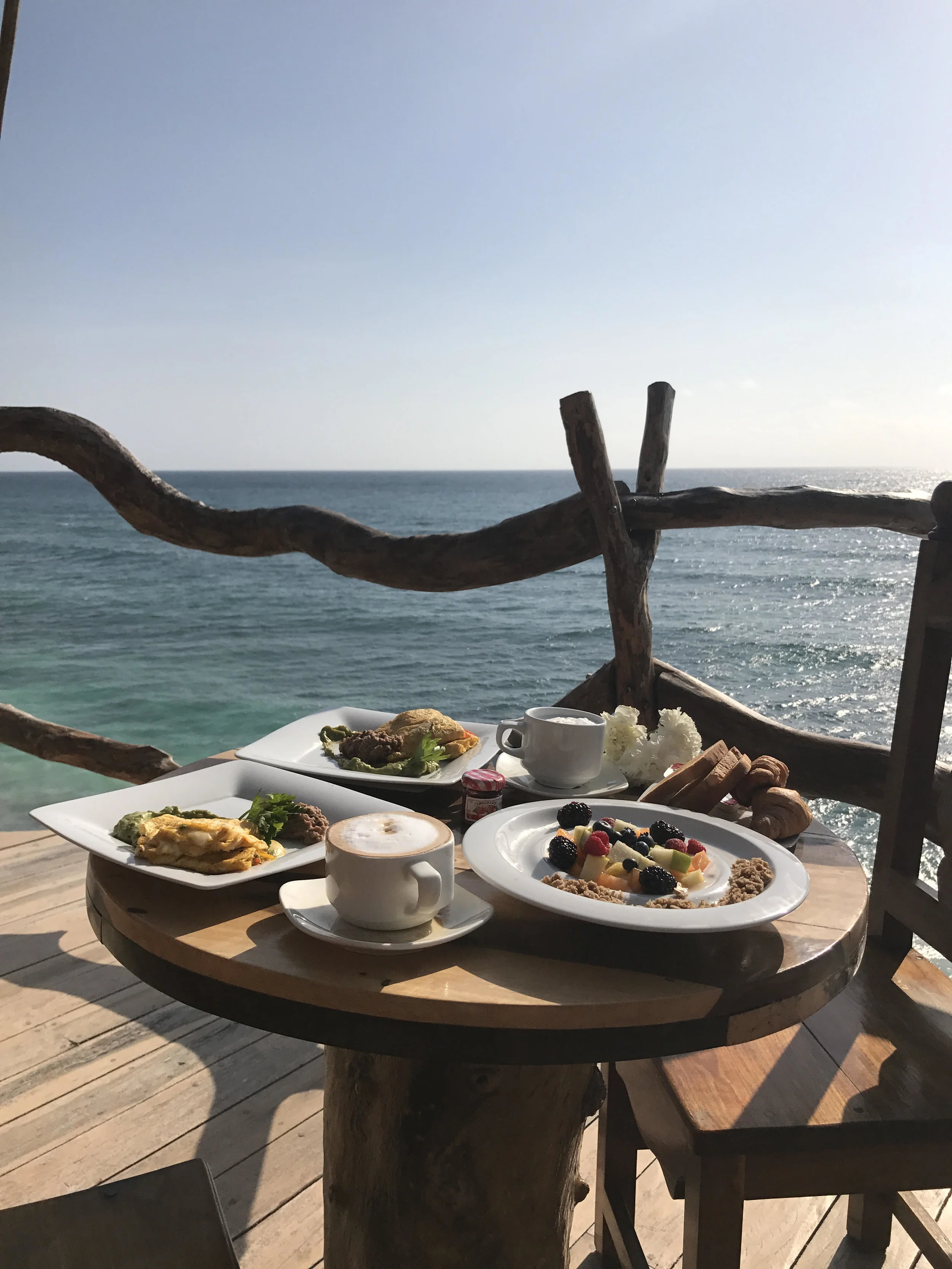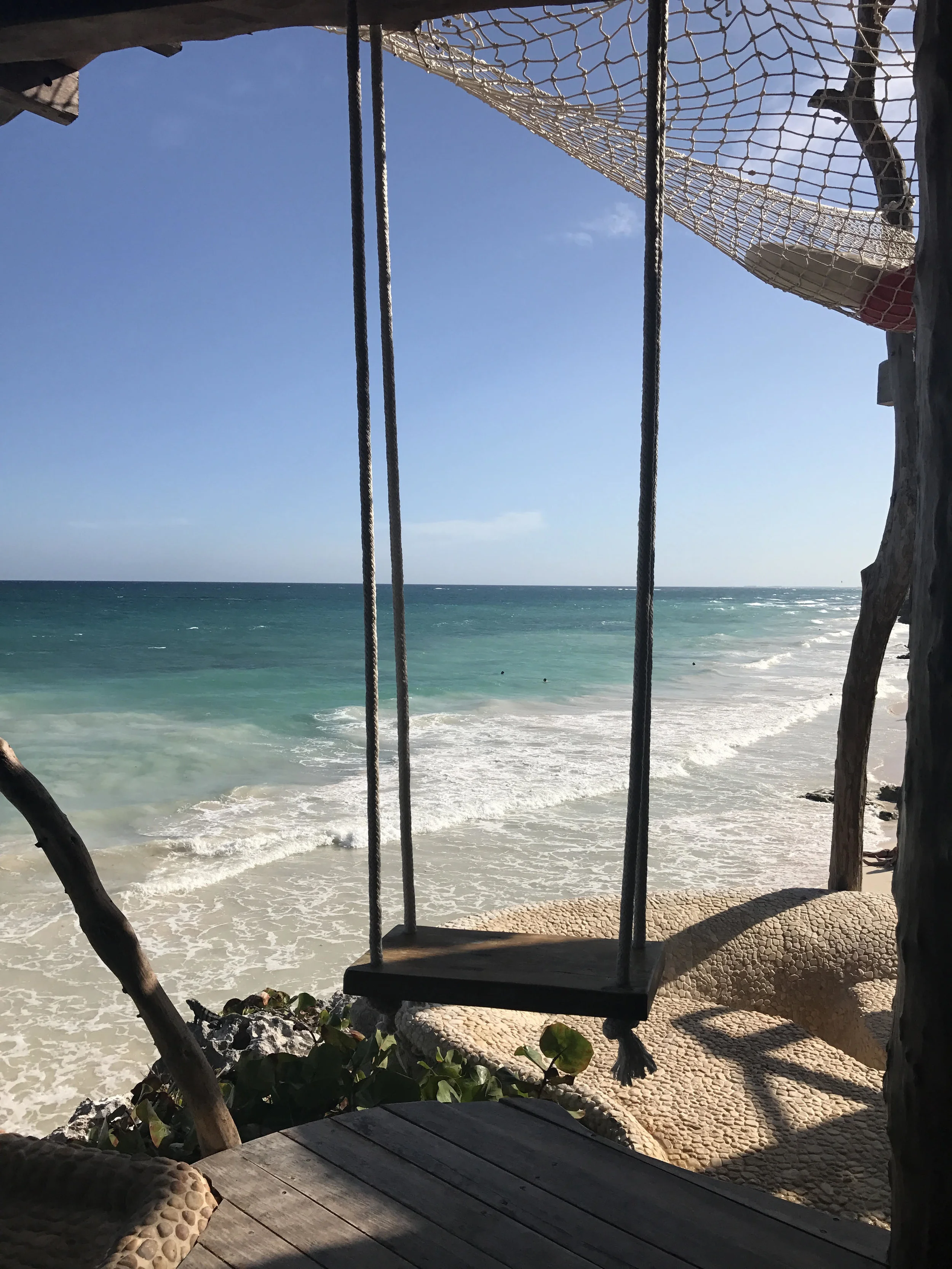 Waking up under a thatched roof looking out at the crashing waves of the ocean, hearing the sound of the water & birds as the sun peeks through the windows...it was magical! Walking through the grounds felt like I was in another world...the entire place looked like it had been made from hand, with nets hanging in the restaurant and over the ocean, swings that you could sit on with your feet dangling over the water, it was so cool!