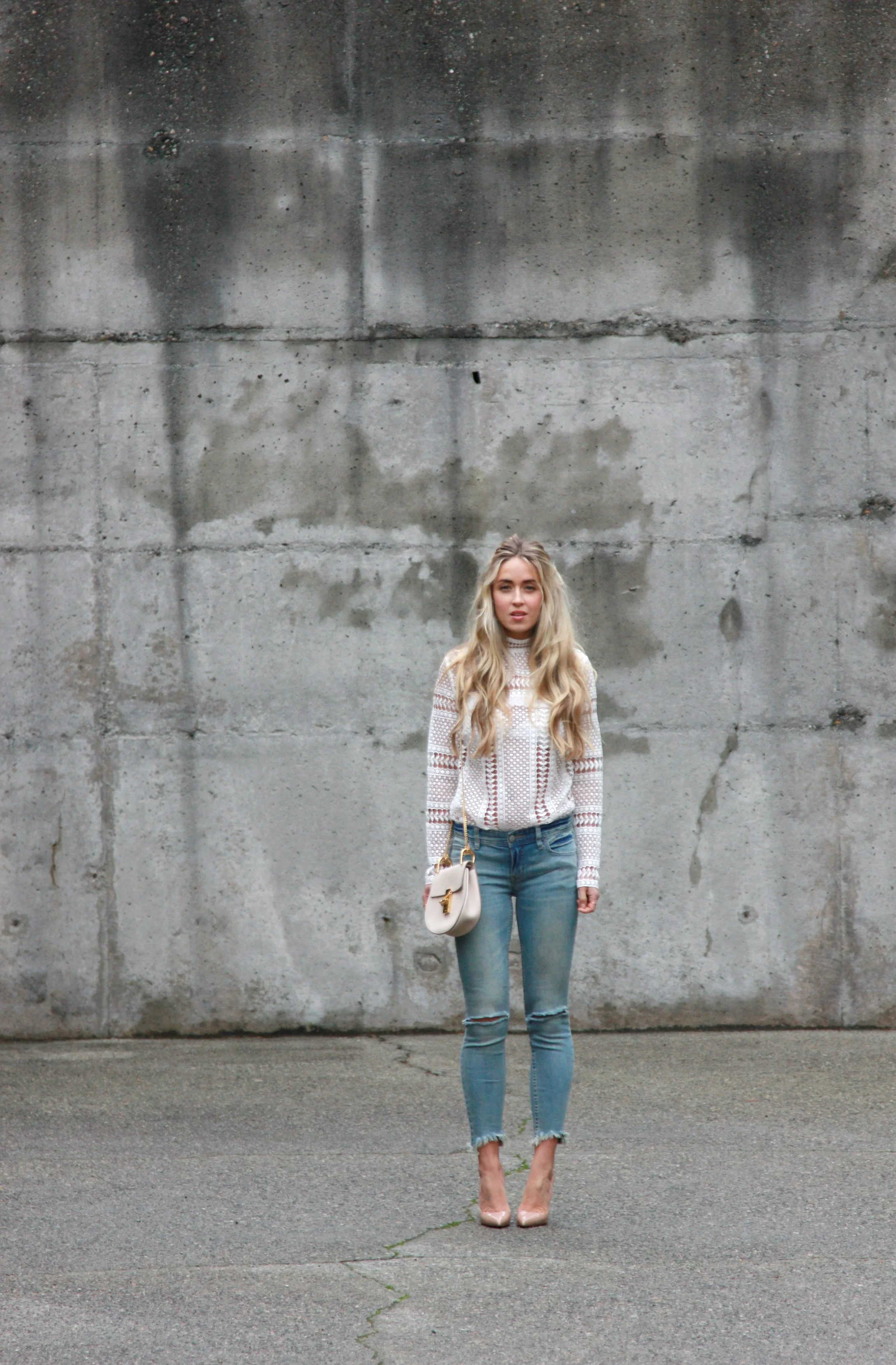 Self-Portrait Top, Free People Denim, Chloé Bag, Christian Louboutin Pumps
